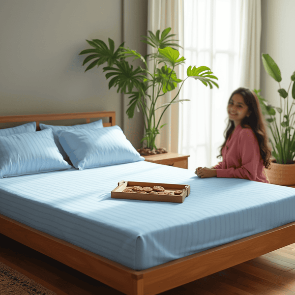 Leaf 210 TC Fitted Bedsheet with Pillow Covers - Pink