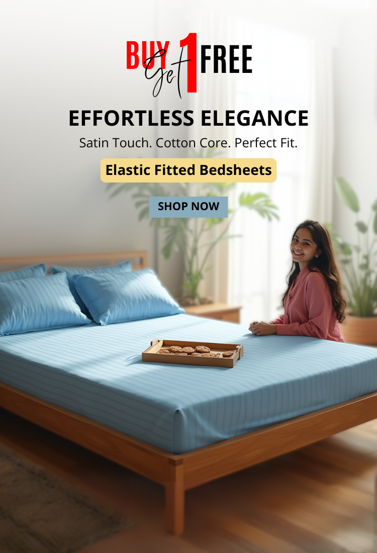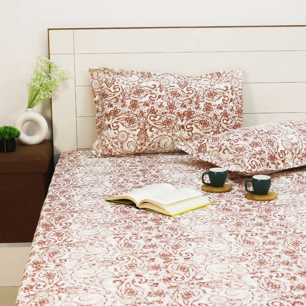 Geometrical 210 TC Fitted Bedsheet with Pillow Covers - Beige