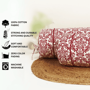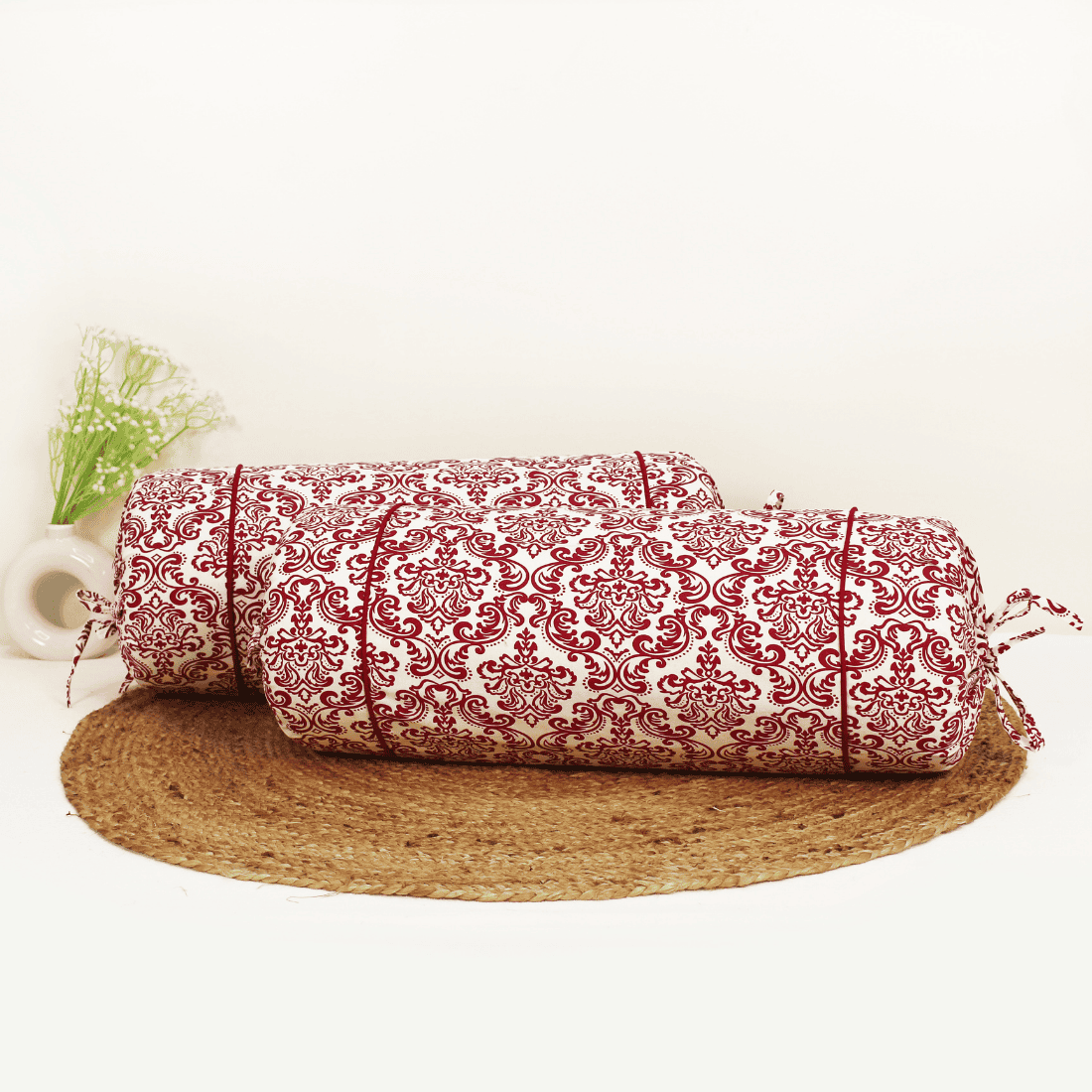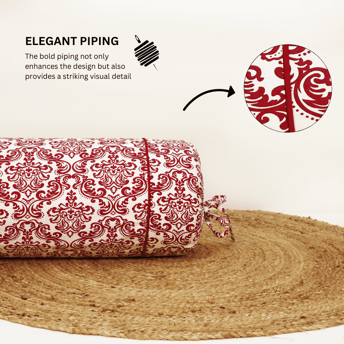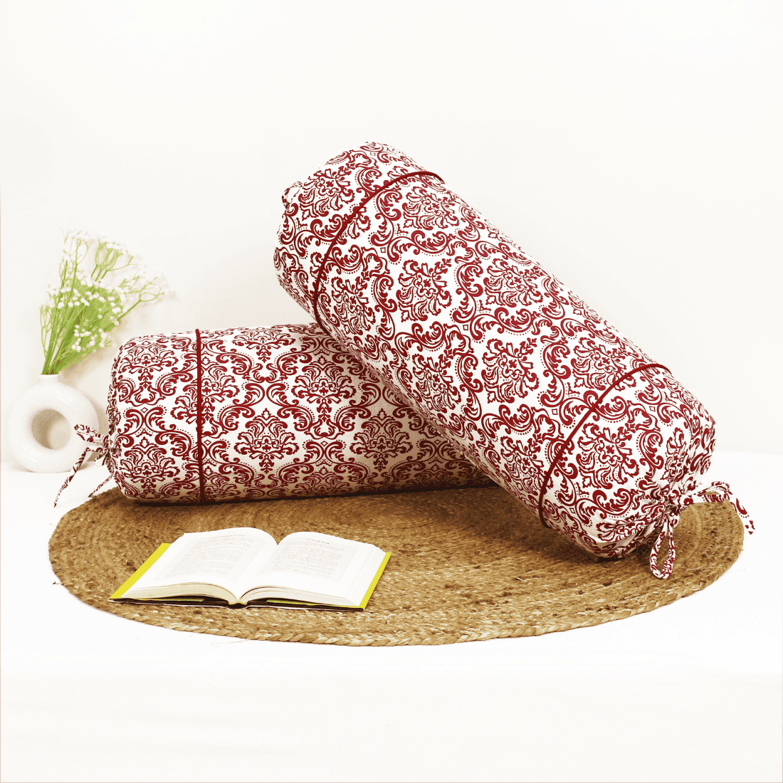Printed Damask 2 Pcs Cotton Bolster Cover set - Maroon