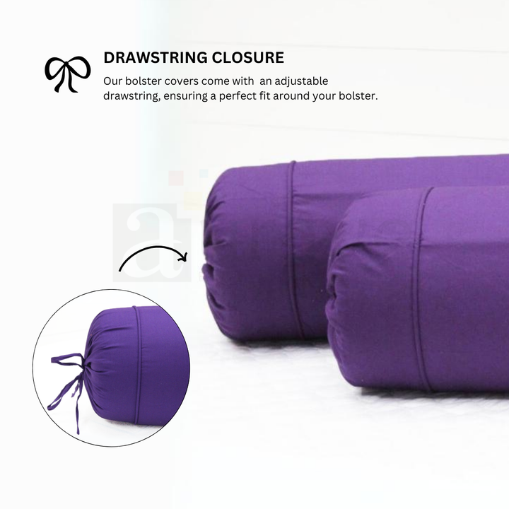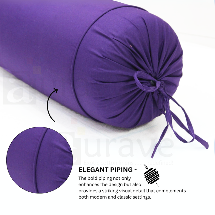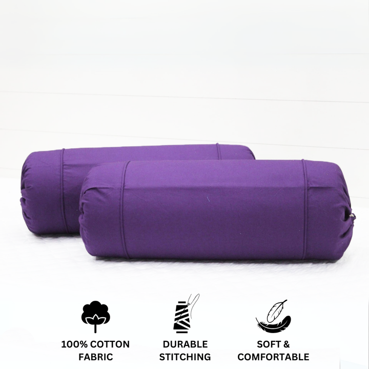 Plain Cotton 2 Pcs Bolster Cover Set - Dark Purple