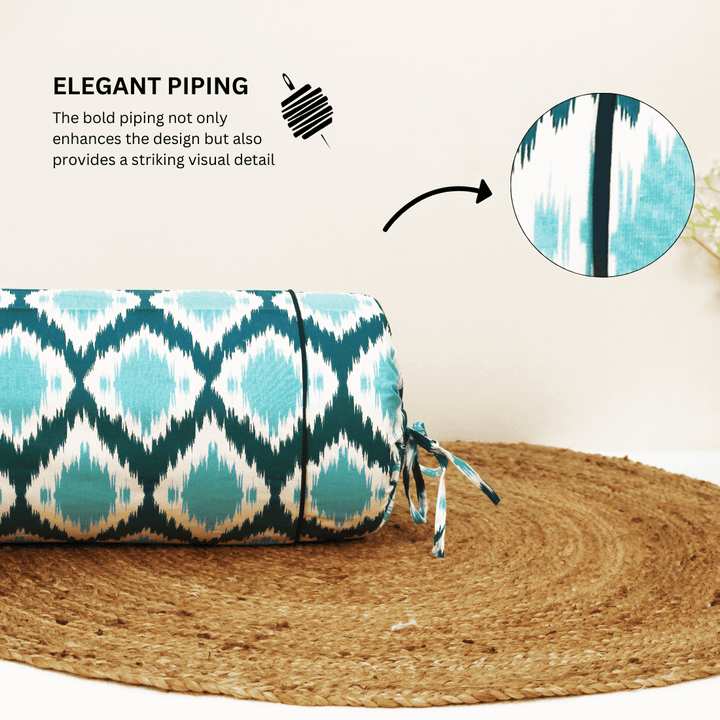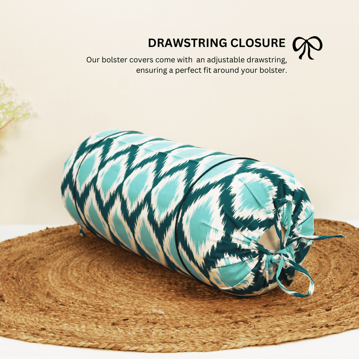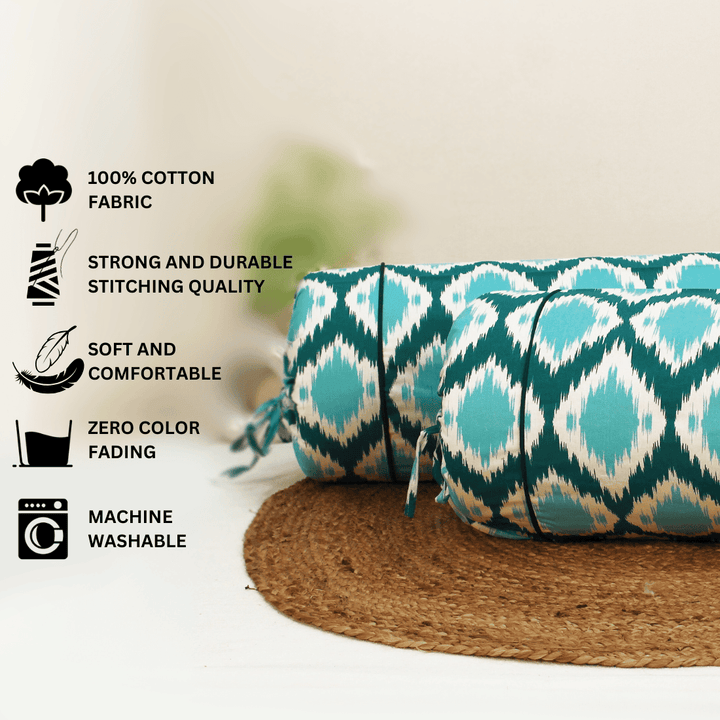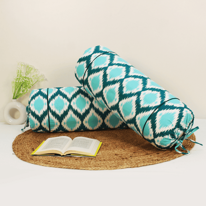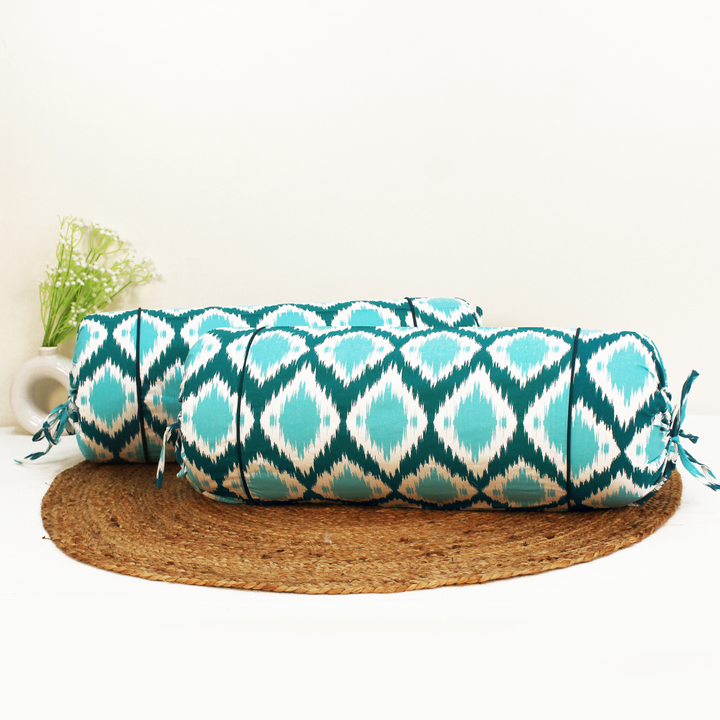 Printed Ikat Cotton 2 Pcs Bolster Cover set - Aqua