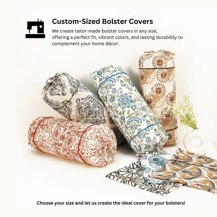 Bring home a set of high quality cotton printed bolster covers that will enlighten your room. These bolster covers comes with draw strings and keep your bolster in place.