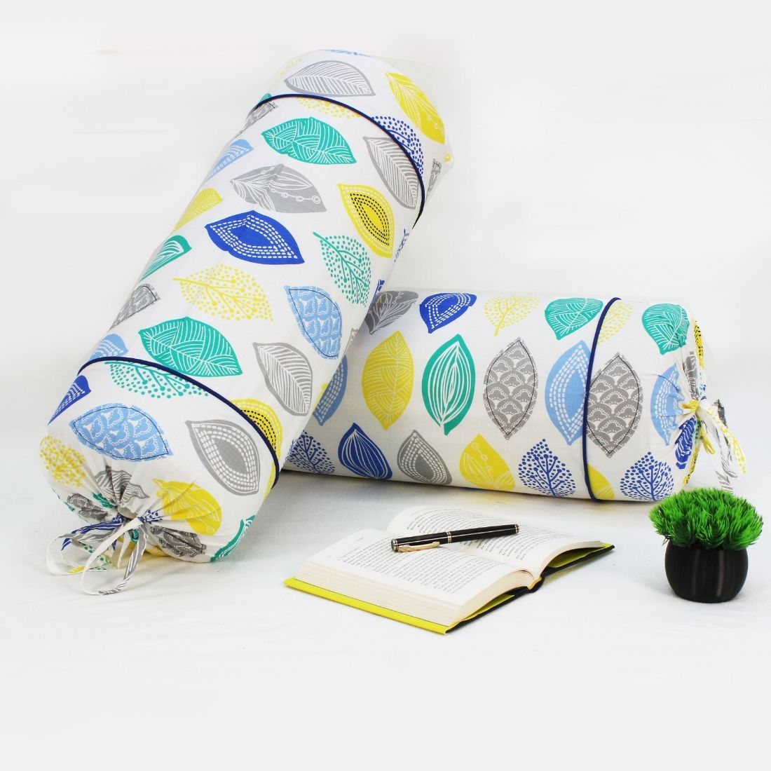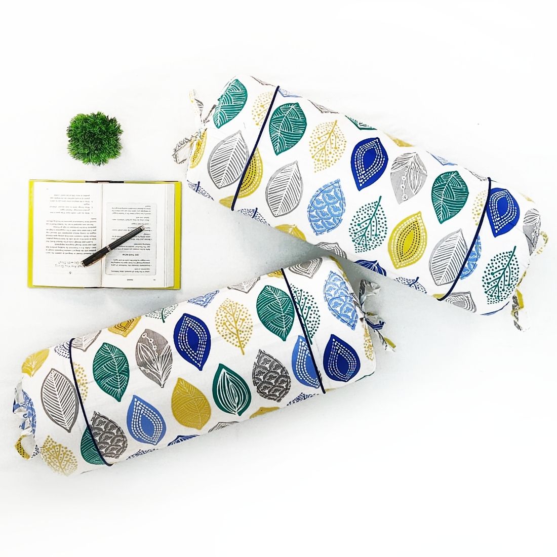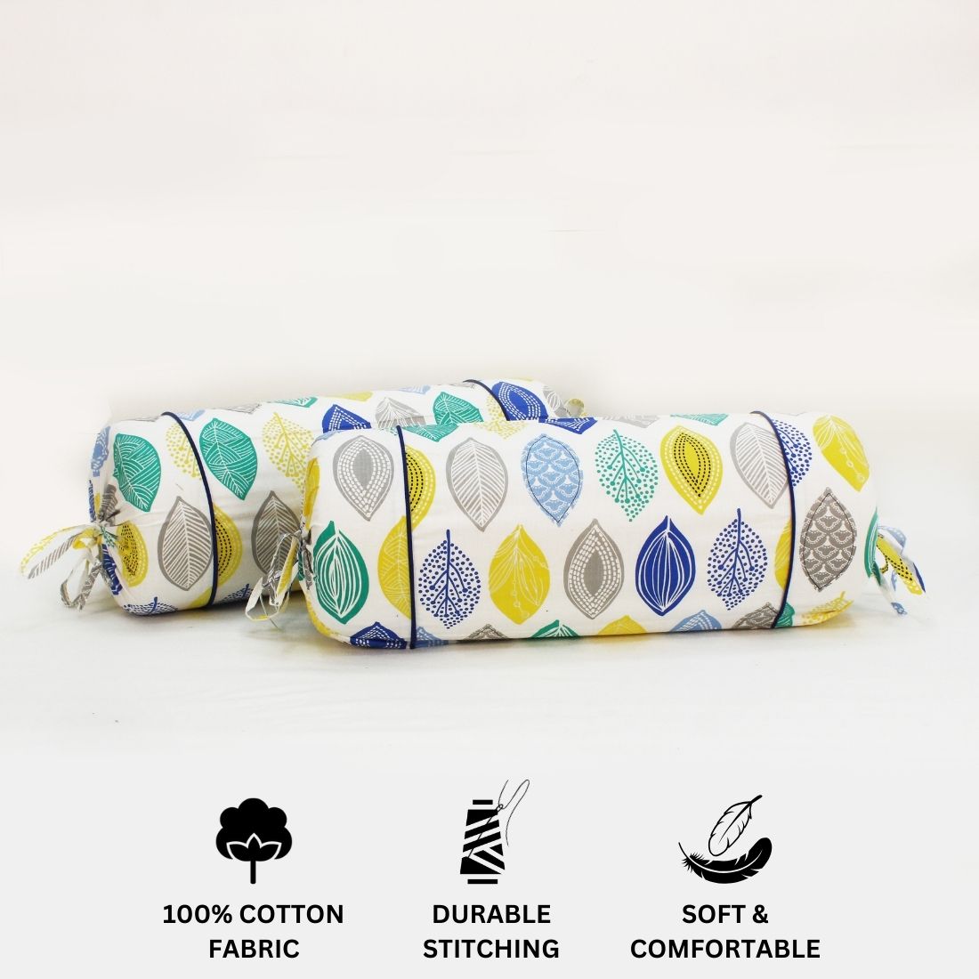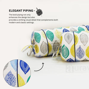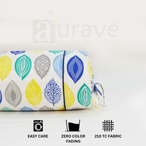 Printed Multicolor Feathers Cotton 2 Pcs Bolster Cover set - Blue