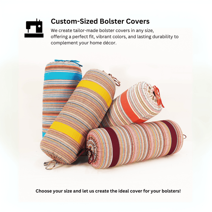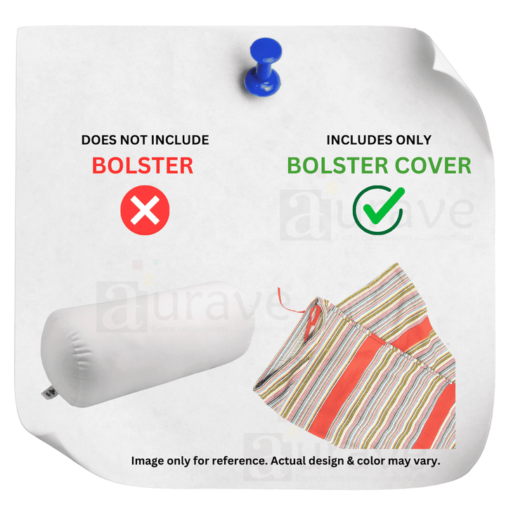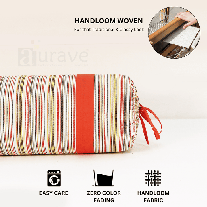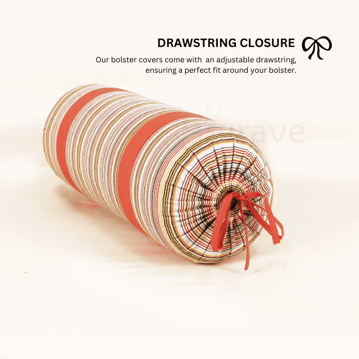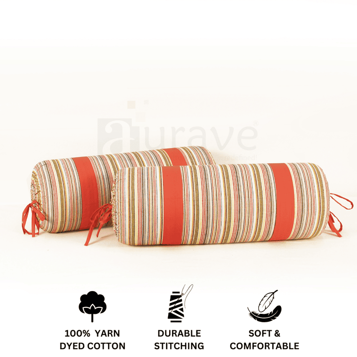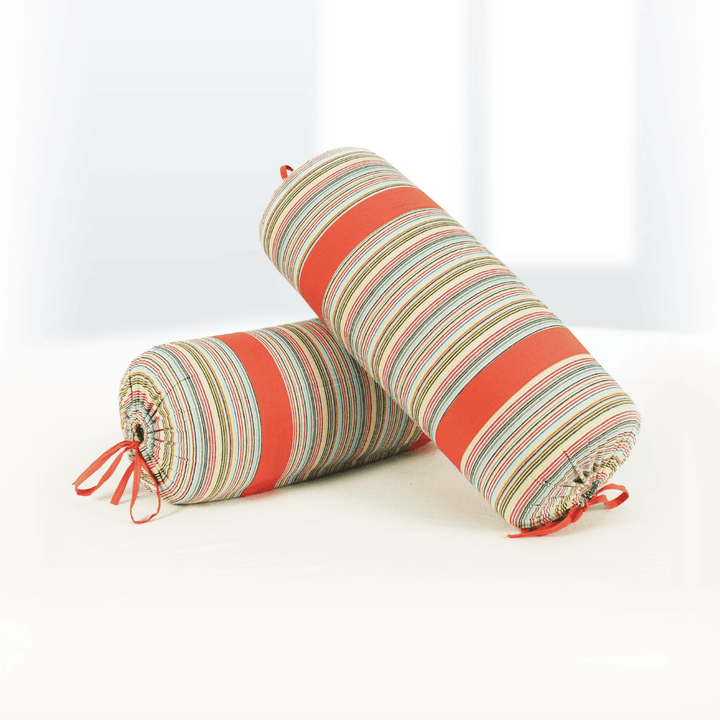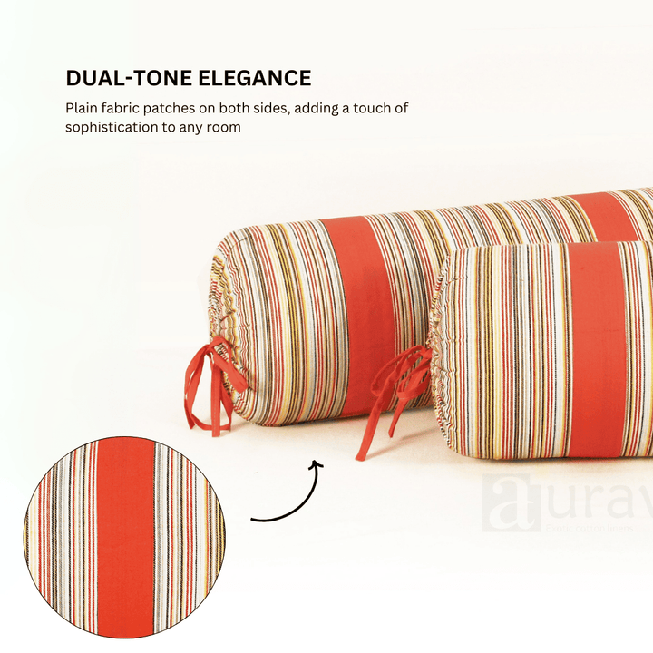 Multicolor Stripes Woven Cotton 2 Pcs Bolster Cover set - Peach