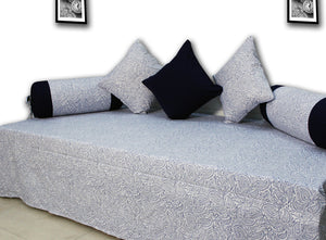 - Experience the epitome of elegance and comfort with our exquisite diwan cover set. Crafted with meticulous attention to detail, this set includes a beautifully designed diwan cover, 2 bolster covers, and 3 cushion covers, all made with premium-quality materials.