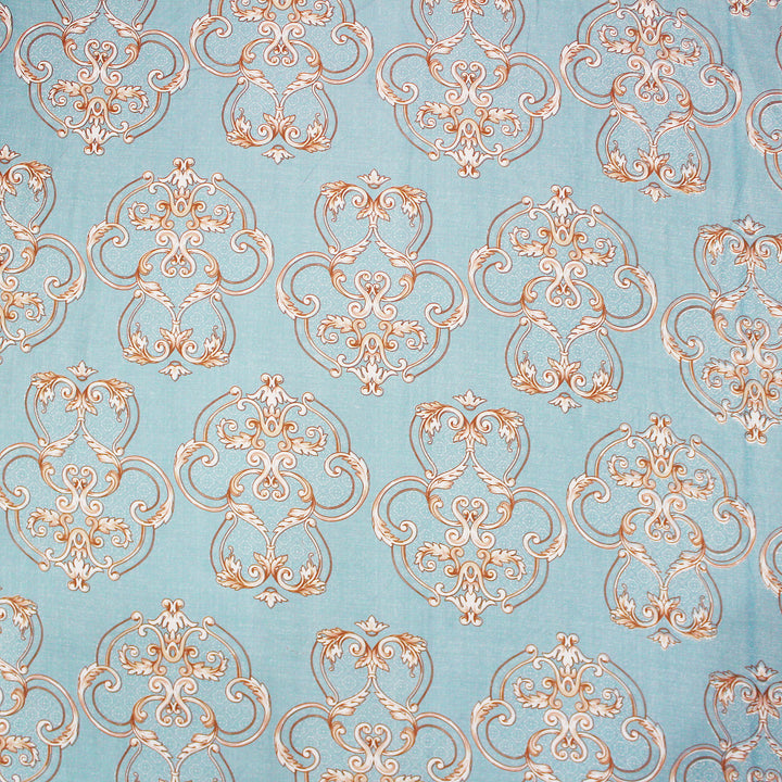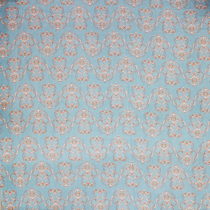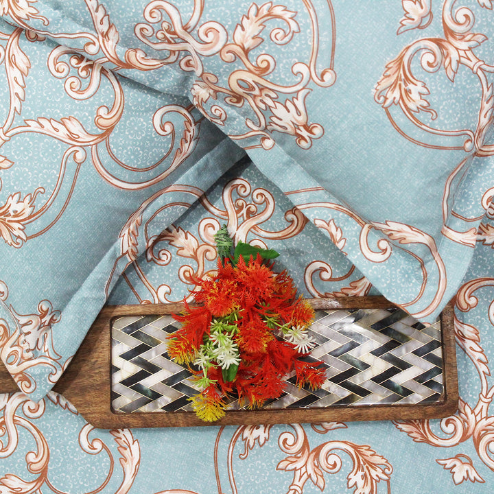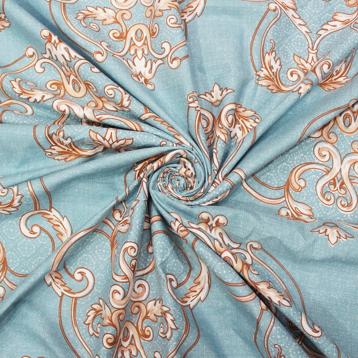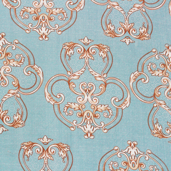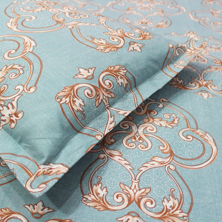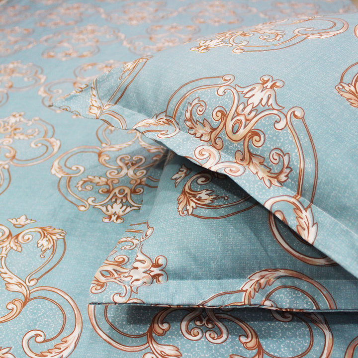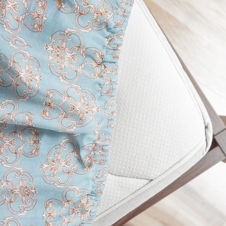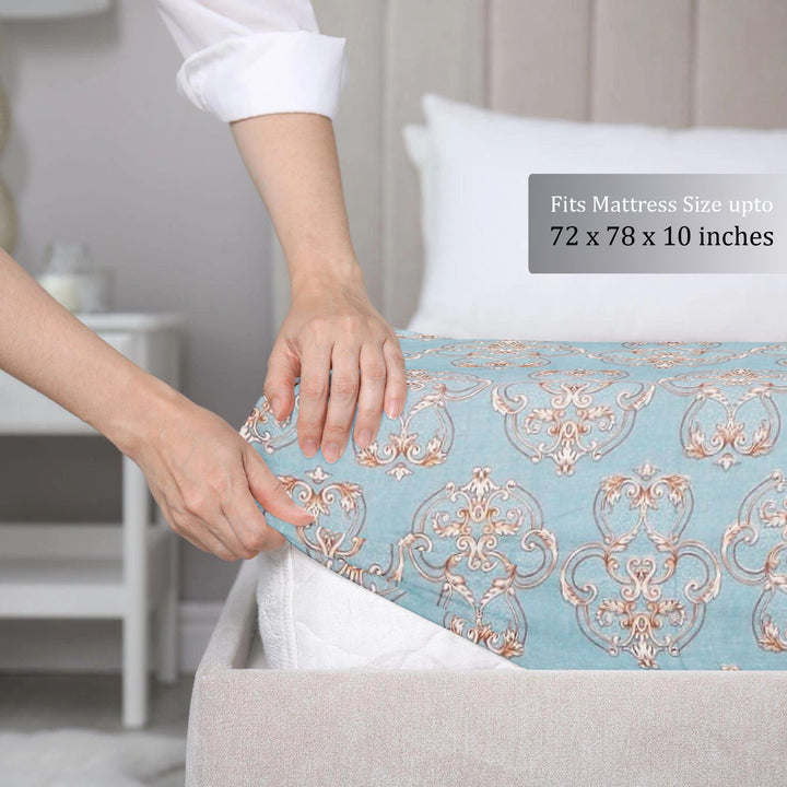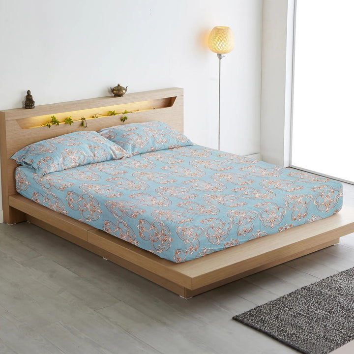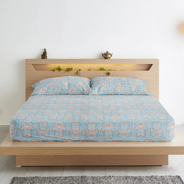 Damask 210 TC Fitted Bedsheet with Pillow Covers - Blue