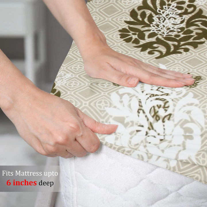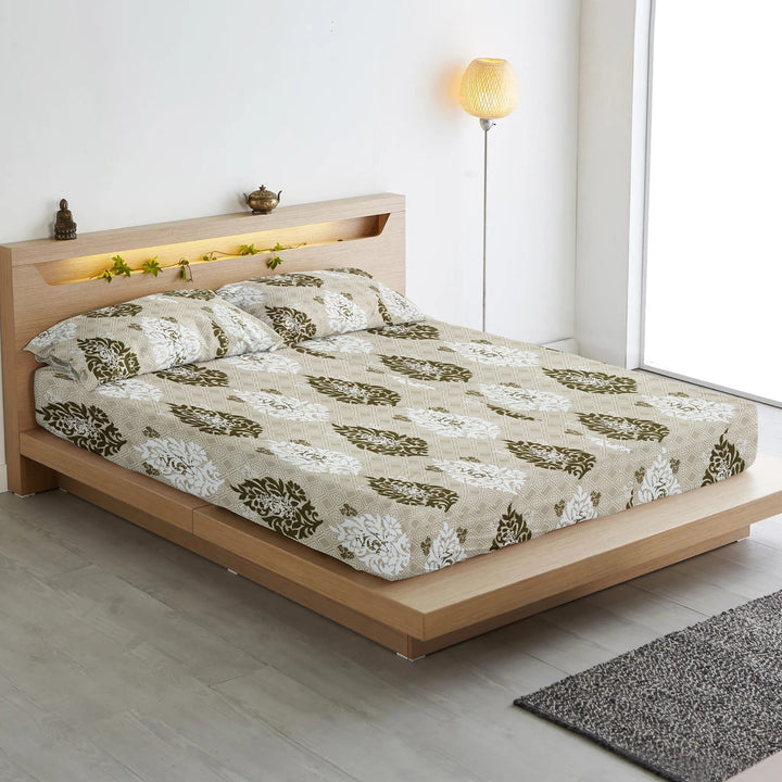 Khaki Festive Collection Floral Dohar Bedsheet Set (4 Pc) online in India