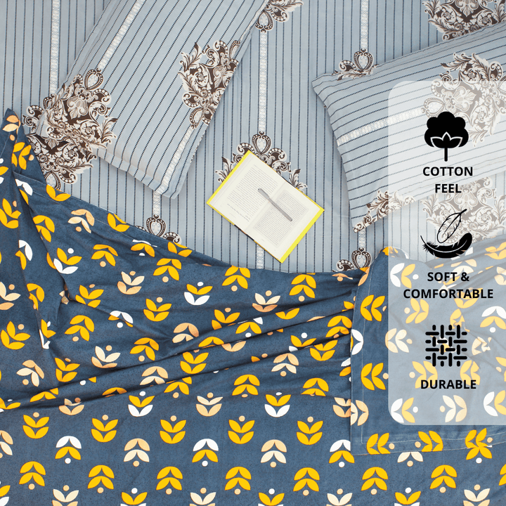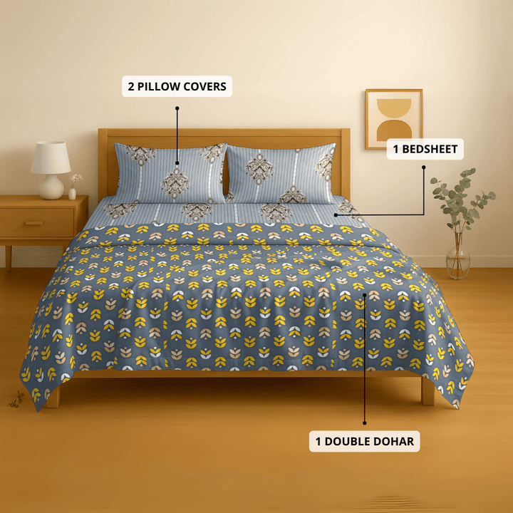 - Set Contents : 1 Bedsheet, 2 Pillow Covers & 1 Dohar