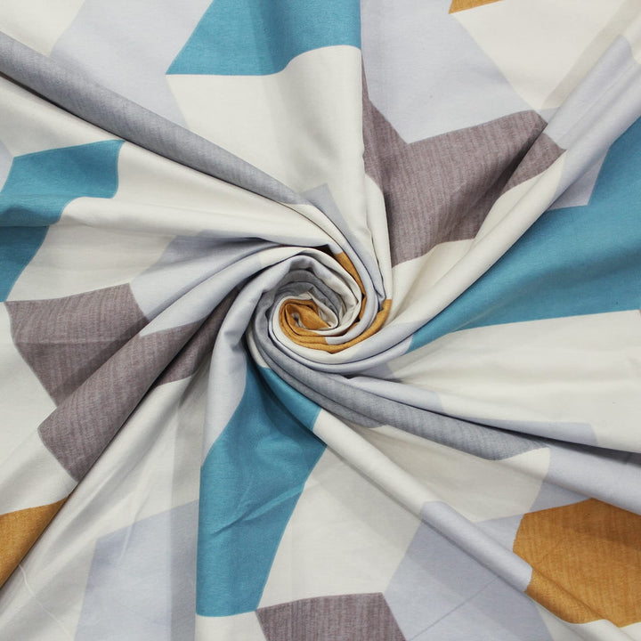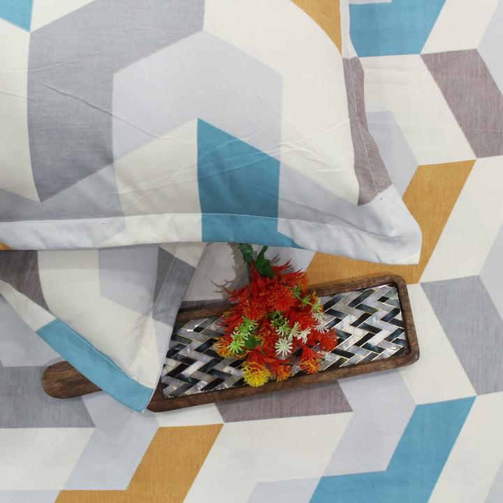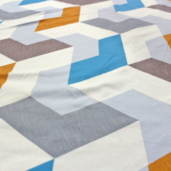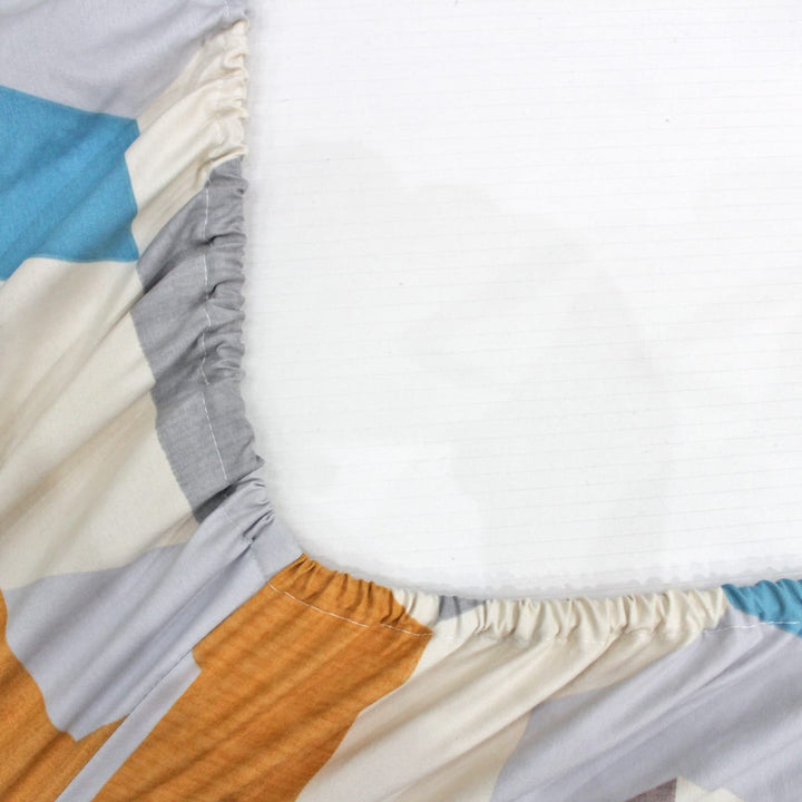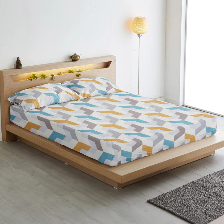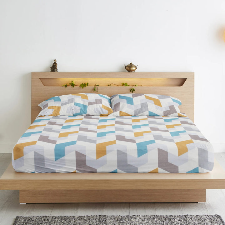 Geometrical 210 TC Fitted Bedsheet with Pillow Covers - Multicolor