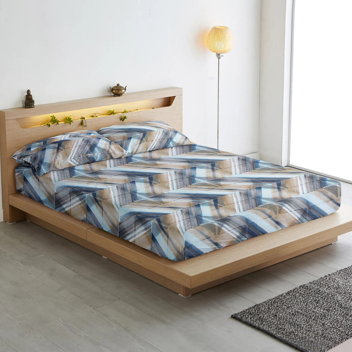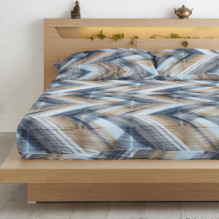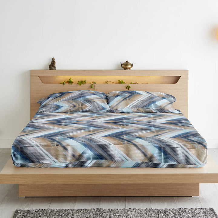 Geometrical 210 TC Flat Bedsheet with Pillow Covers - Multicolor