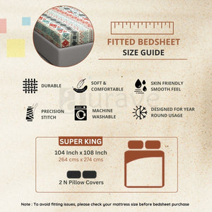 - KING SIZE BEDSHEET : 104 inch x 108 inch (264 cms x 274 cms)