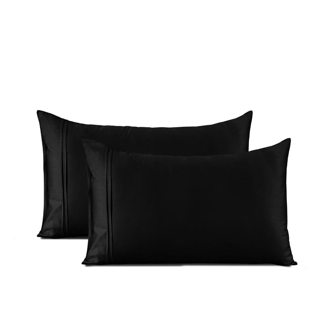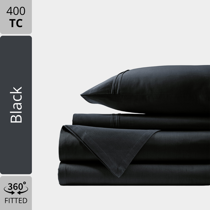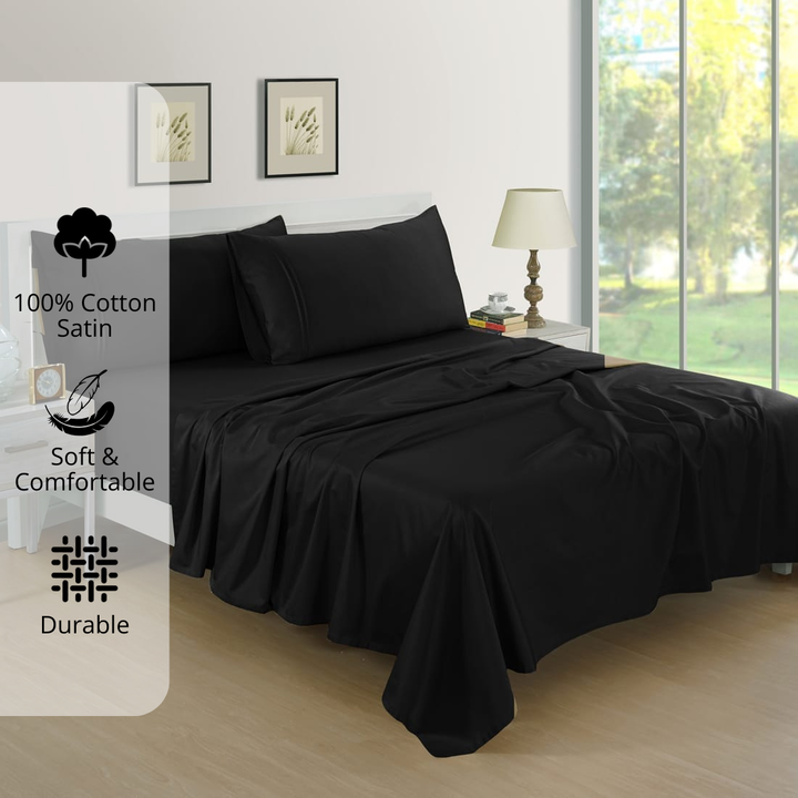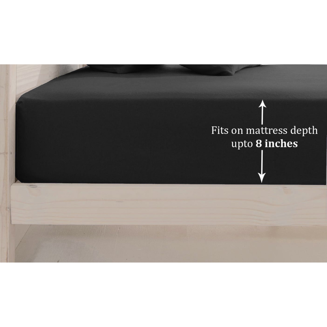 Plain Cotton Satin 400 TC Fitted Bedsheet with Pillow Covers - Black