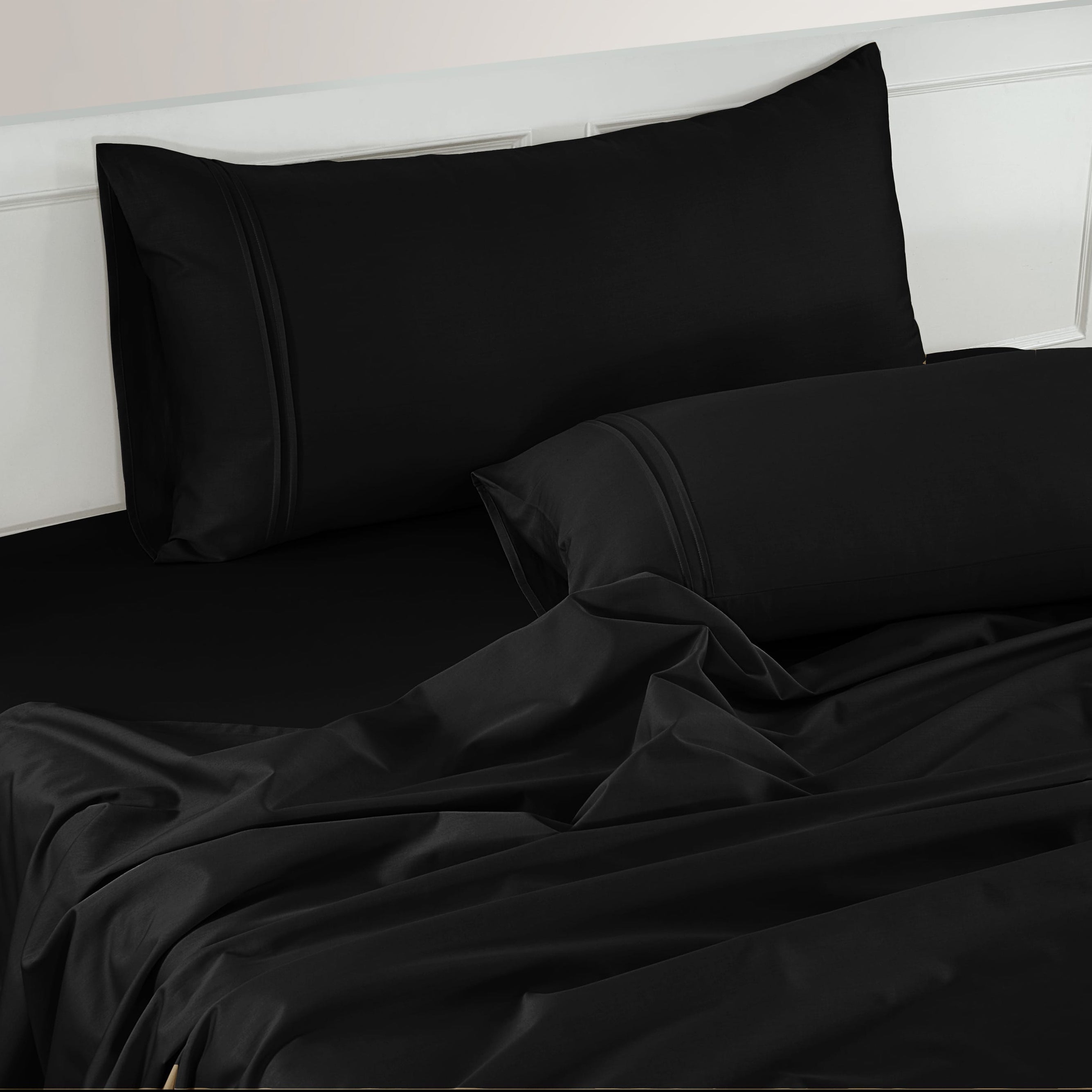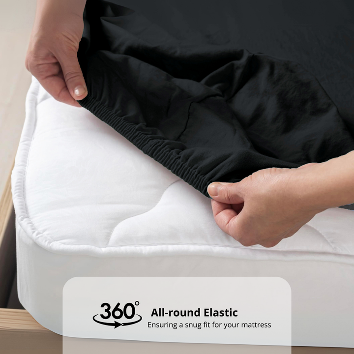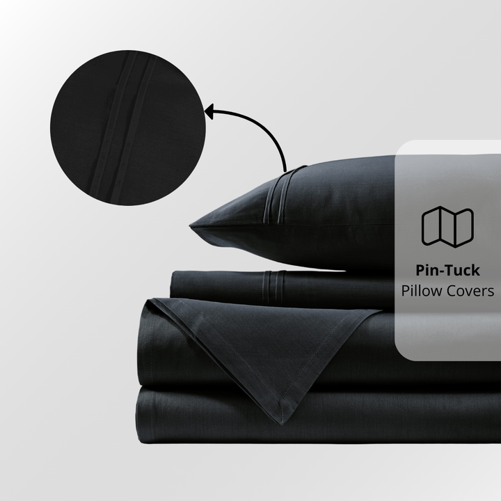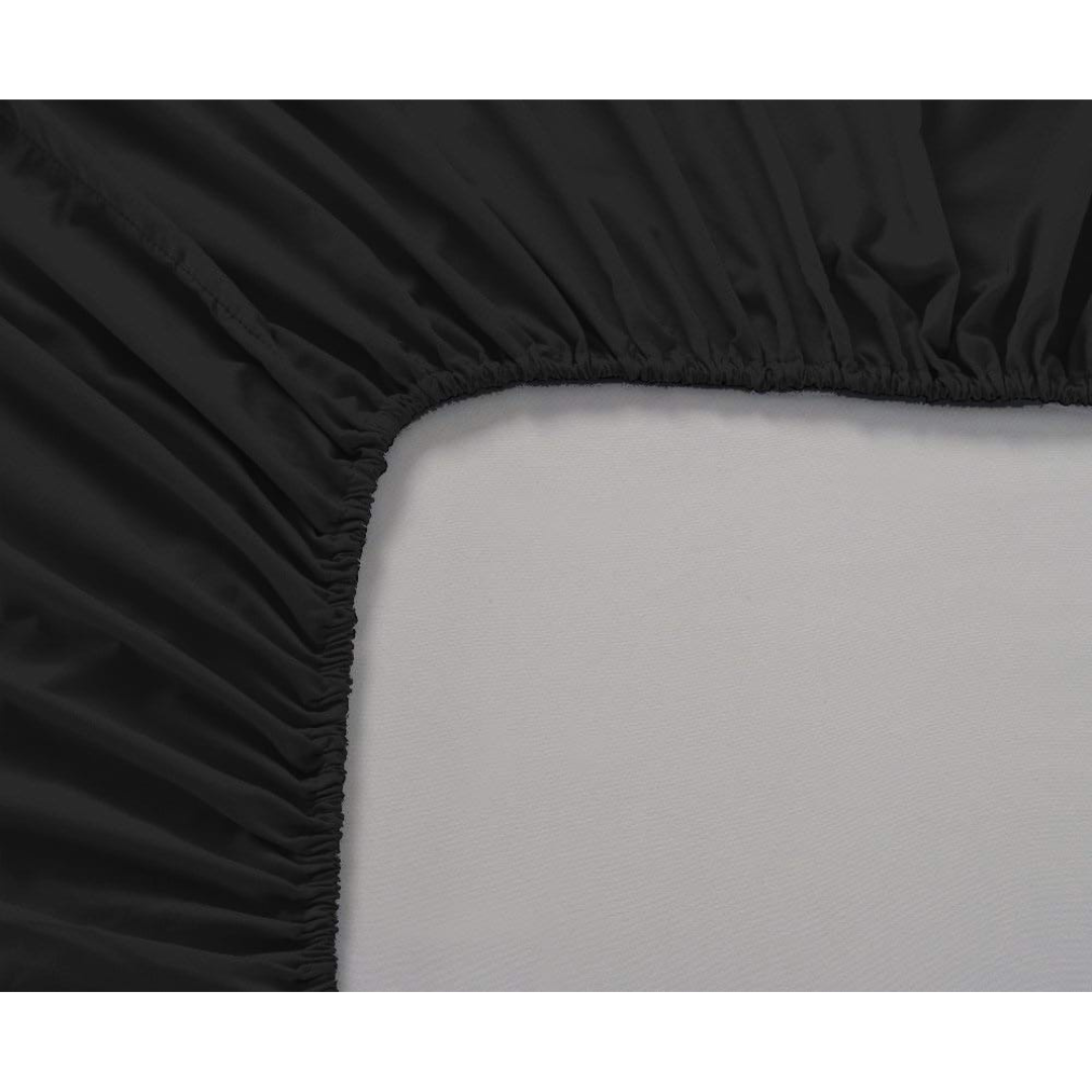 Plain Cotton Satin 400 TC Fitted Bedsheet with Pillow Covers - Black