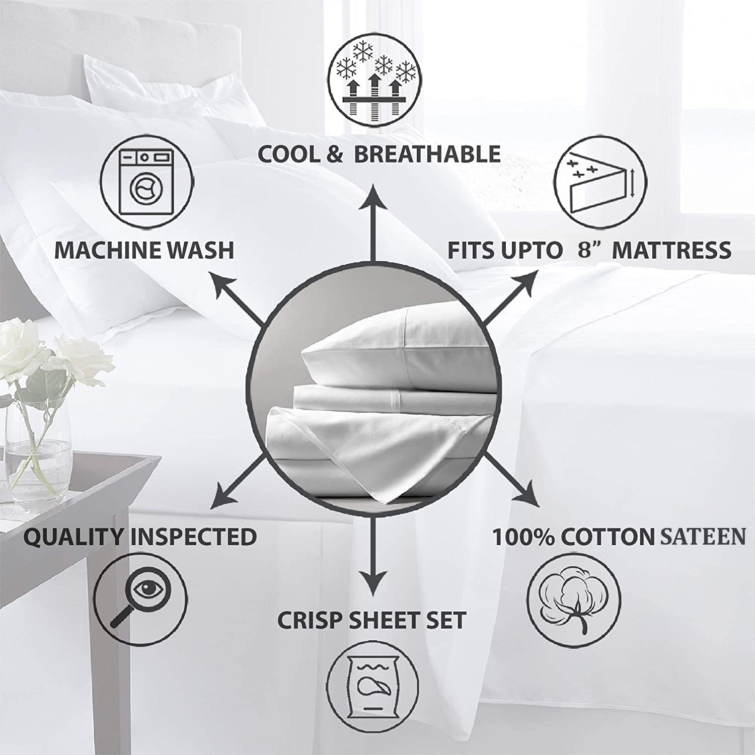 - PERFECT FITTED SHEETS: 400 TC Cotton Satin with high quality all around elastic.