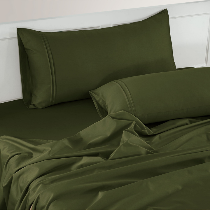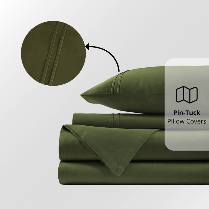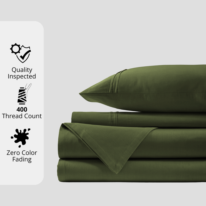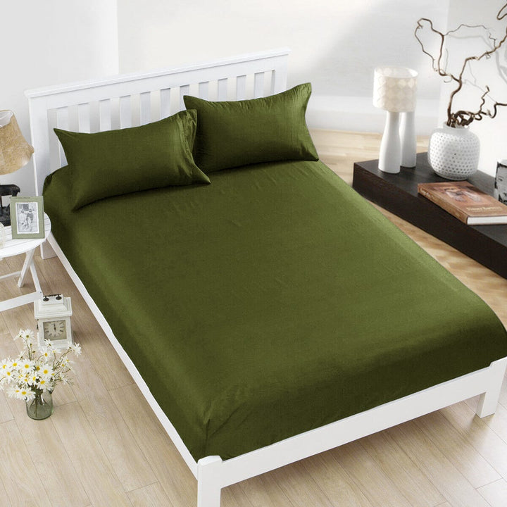 Plain 400 TC Cotton Satin Flat Bedsheet with Pillow Covers - Bottle Green
