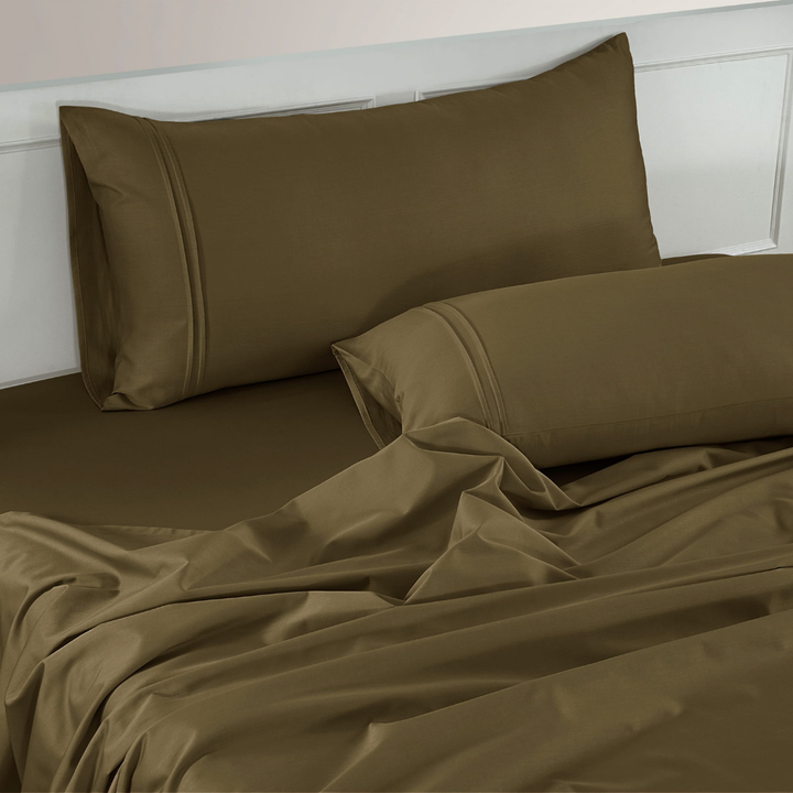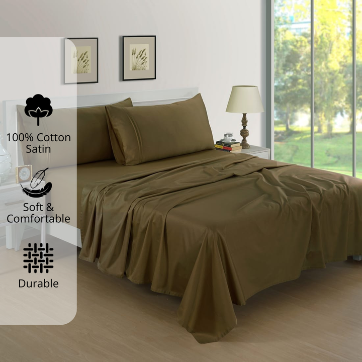 Plain 400 TC Cotton Satin Flat Bedsheet with Pillow Covers - Golden Brown