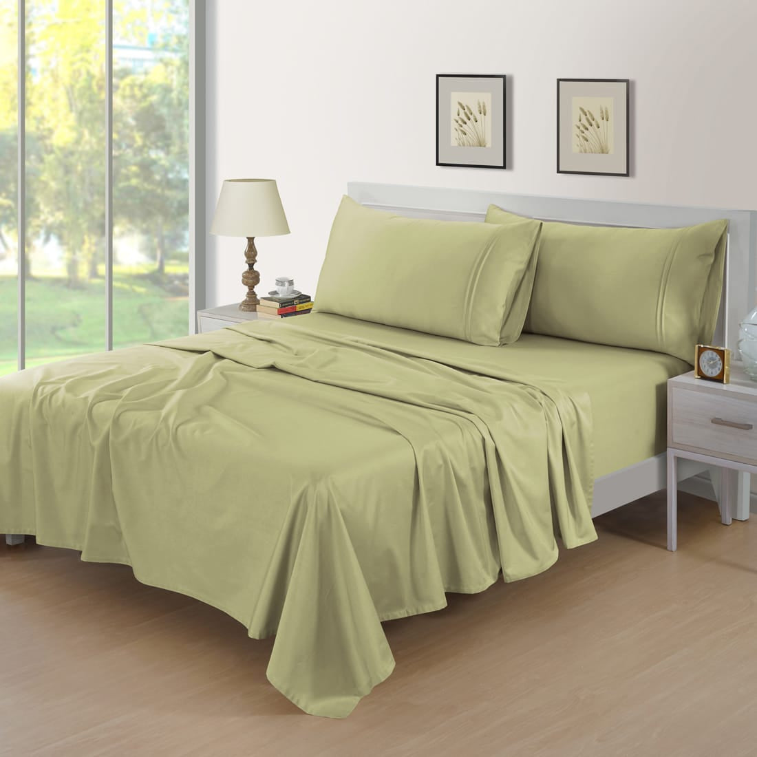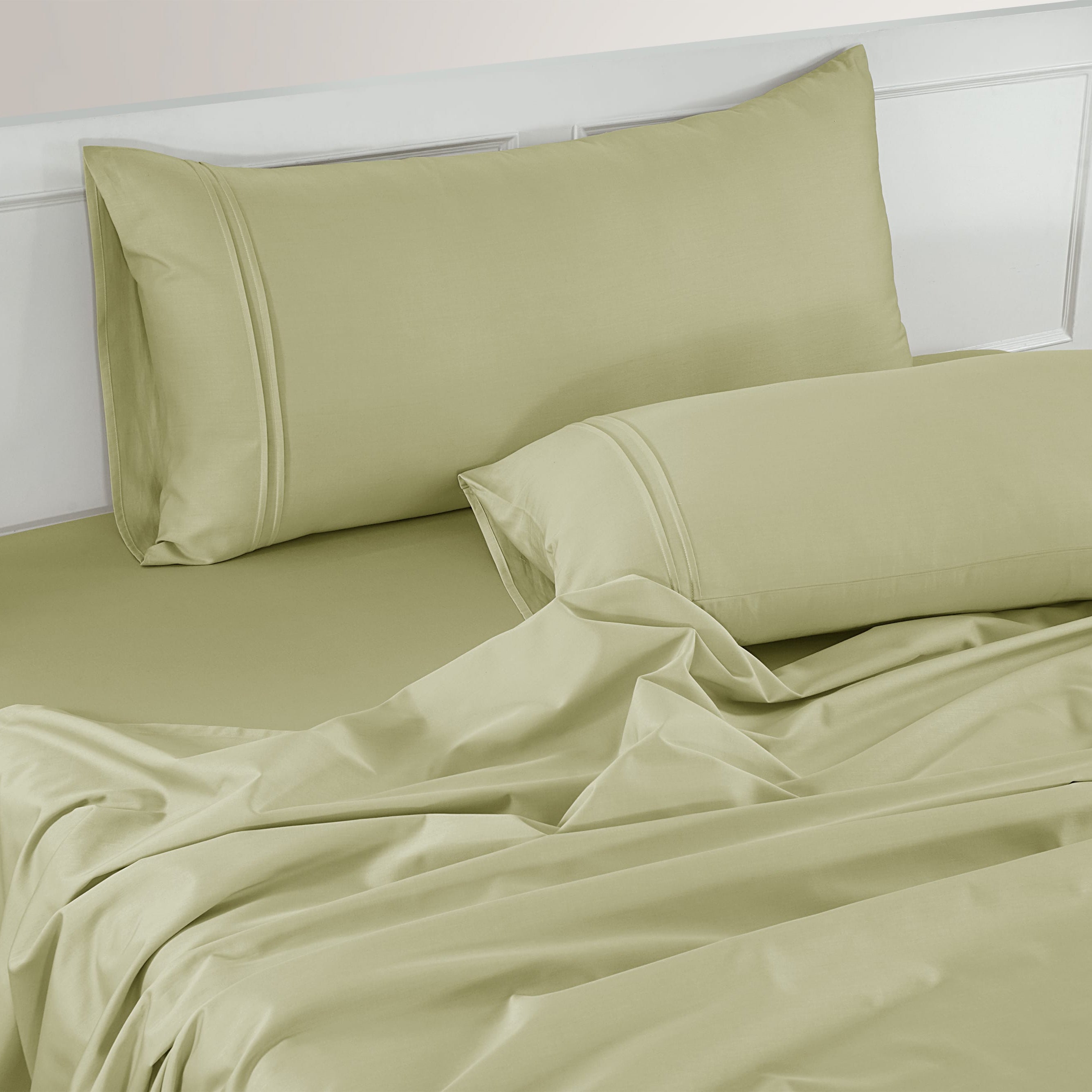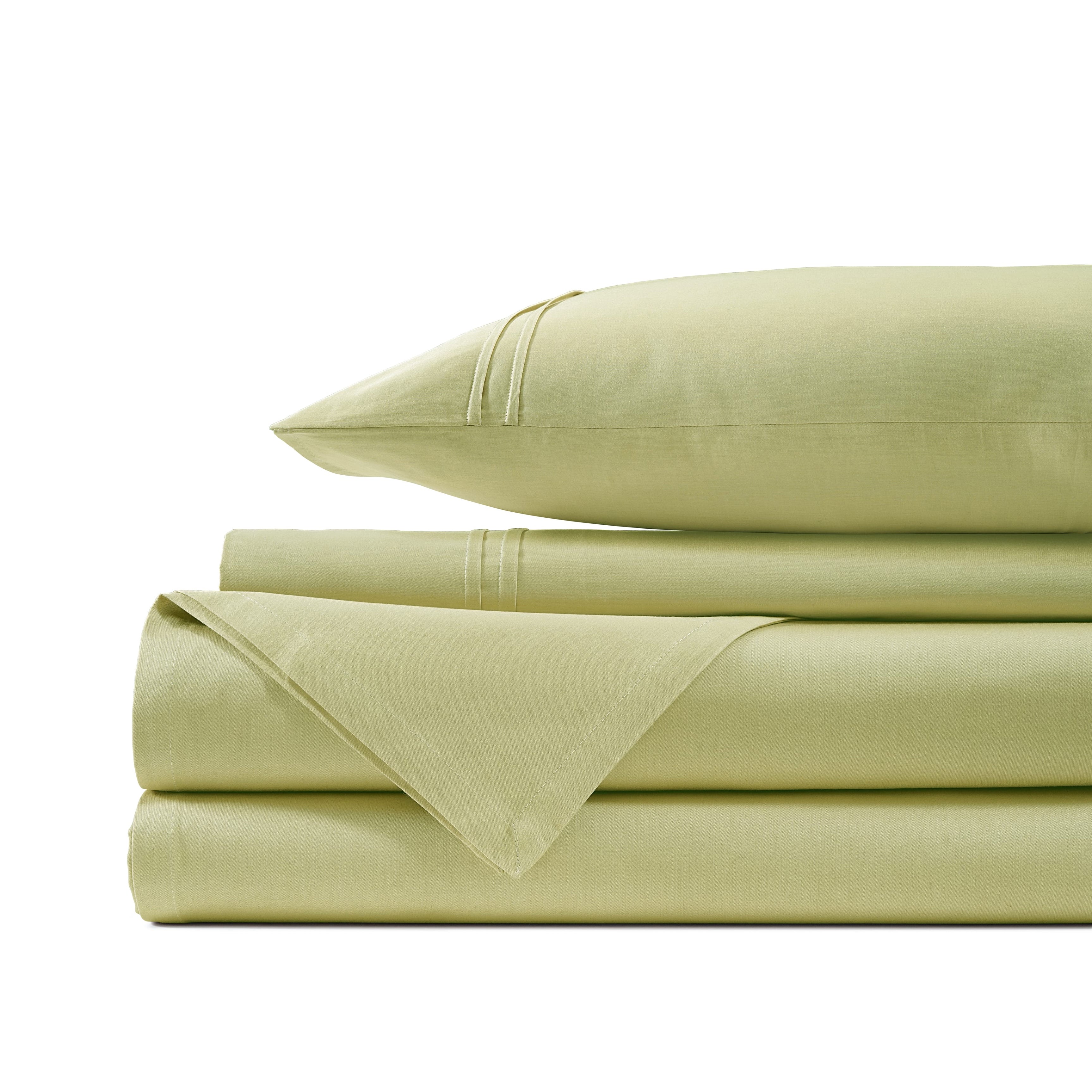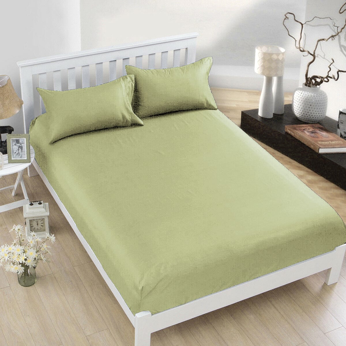 Plain 400 TC Cotton Satin Flat Bedsheet with Pillow Covers - Light Green