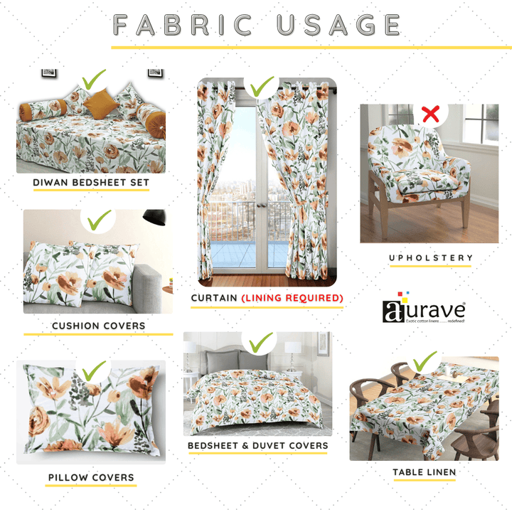 - FABRIC: 100% Printed Cotton Fabric, perfect for home decor articles like Bedsheets, Curtains, Cushion Covers, Table Cloth, Diwan Set, Bolster covers etc.