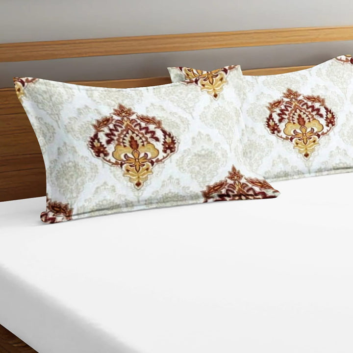Printed Damask 2 Pcs Cotton Pillow Cover Set - Maroon