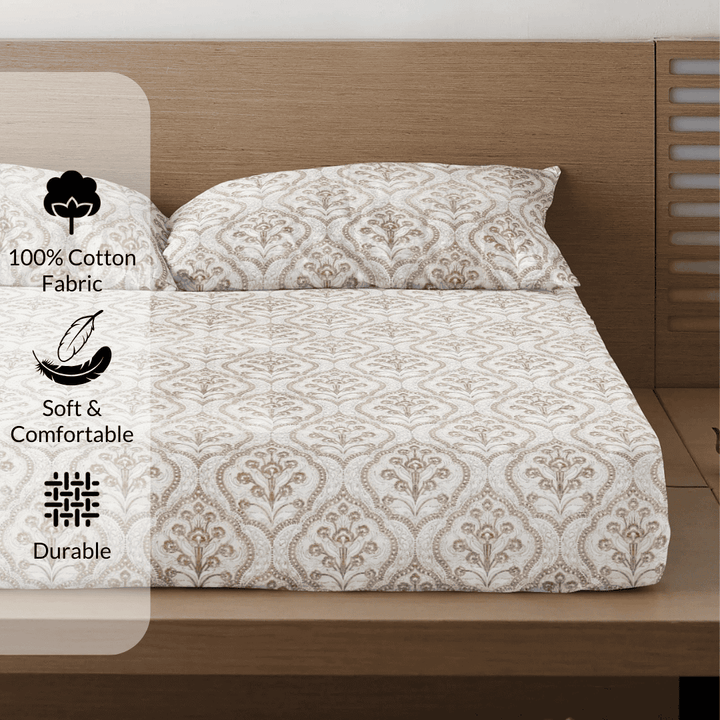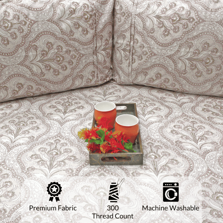 Printed Floral Cotton 300 TC Bedsheet with Pillow Covers - Brown