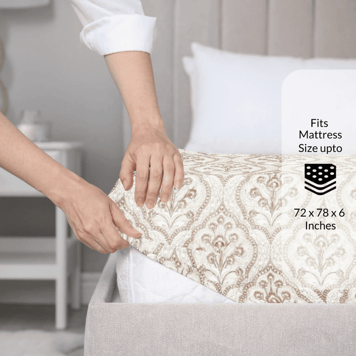 Crafted in India, this bedsheet set combines superior craftsmanship with contemporary design, ensuring a perfect fit for your modern home.