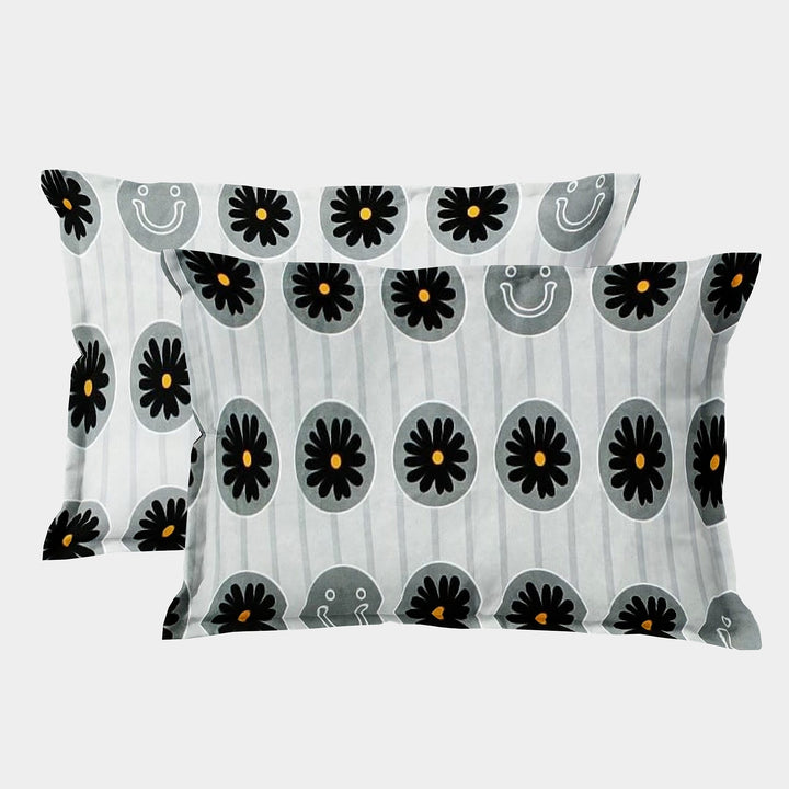 Printed Floral Set of 2 Pcs Pillow Cover - Grey
