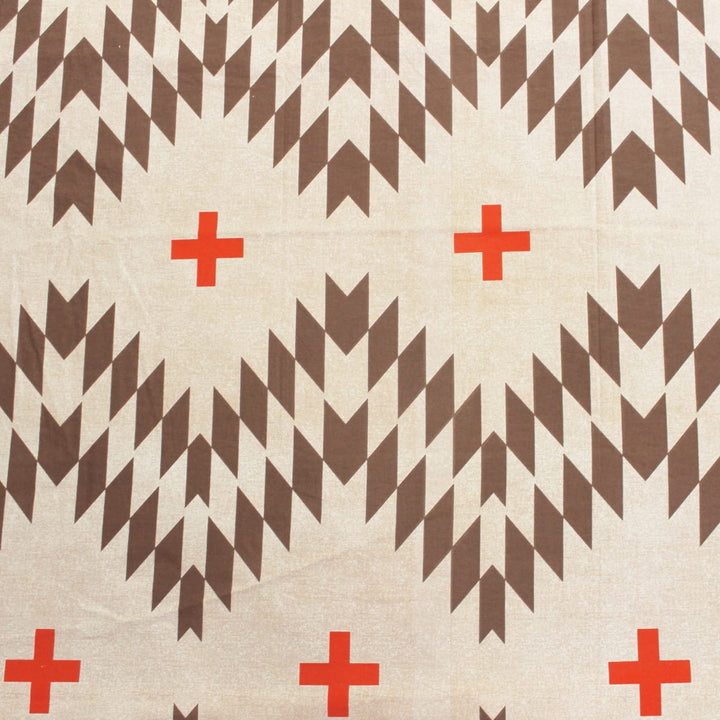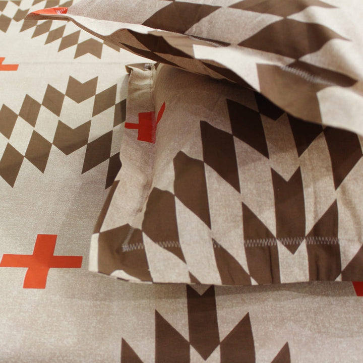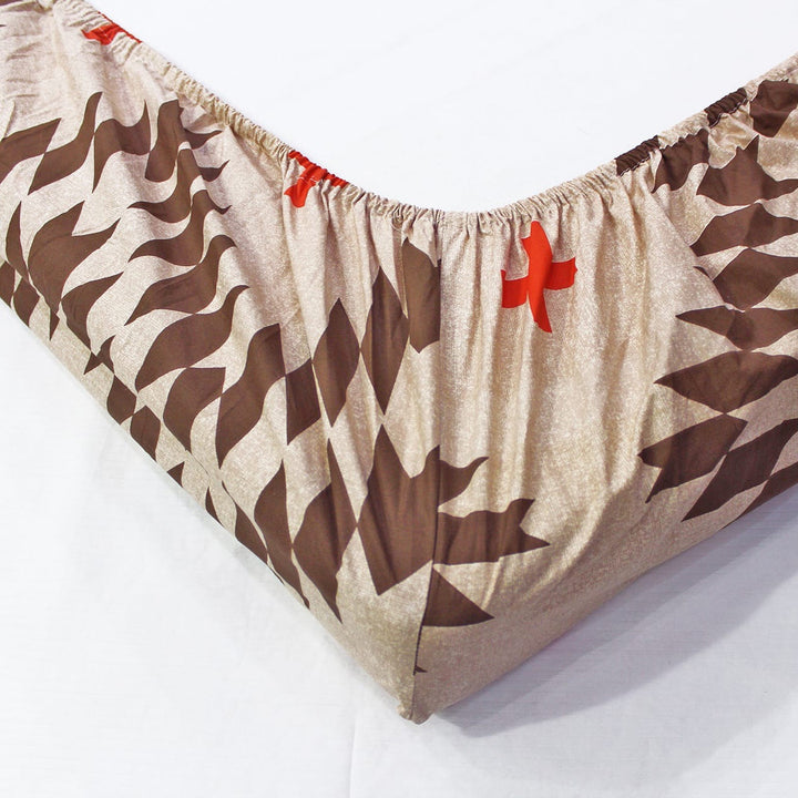 Printed Geometrical Cotton 250 TC Fitted Bedsheet with Pillow Covers - Coffee
